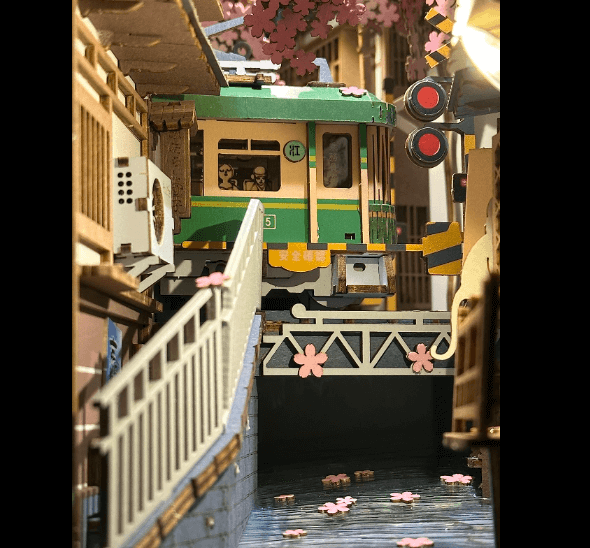🌸 Detailed layers of blossoms, lanterns, and a passing train · Easy to build, stunning to display