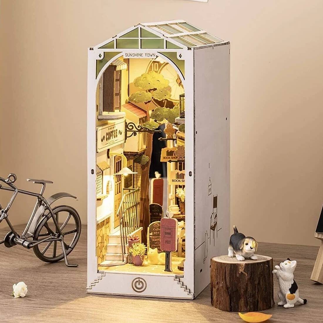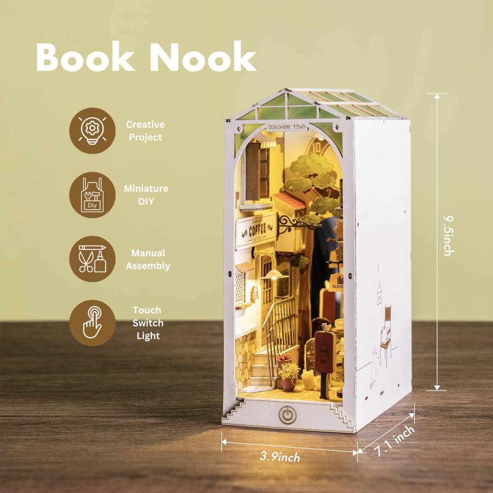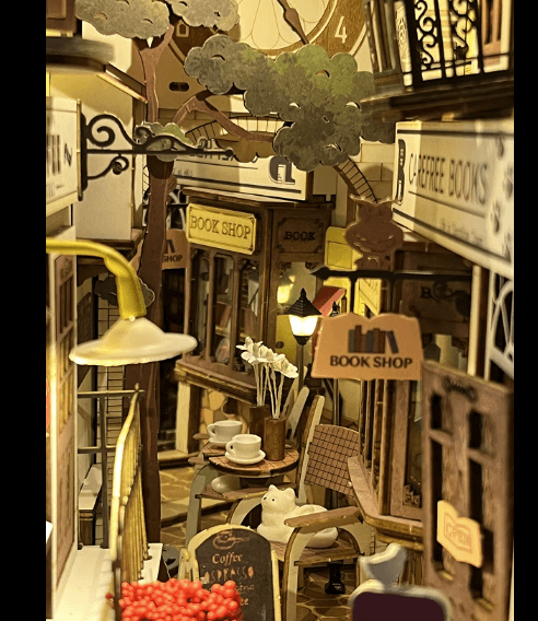 Beyond a DIY book corner, the Book Nook is a captivating collection and decoration. Immerse yourself in the miniature world with rich scenes and imaginative ideas. Gazing at the vibrant corner of the bookshelf will undoubtedly brighten your mood. It comes with a protective dust cover, making it easy to clean and maintain.