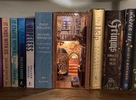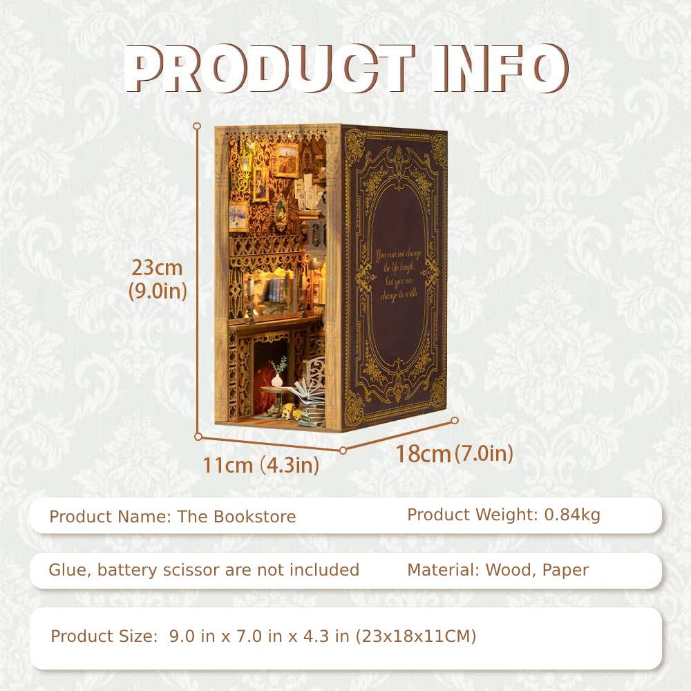 Beyond a DIY book corner, the Book Nook is a captivating collection and decoration. Immerse yourself in the miniature world with rich scenes and imaginative ideas. Gazing at the vibrant corner of the bookshelf will undoubtedly brighten your mood. It comes with a protective dust cover, making it easy to clean and maintain.