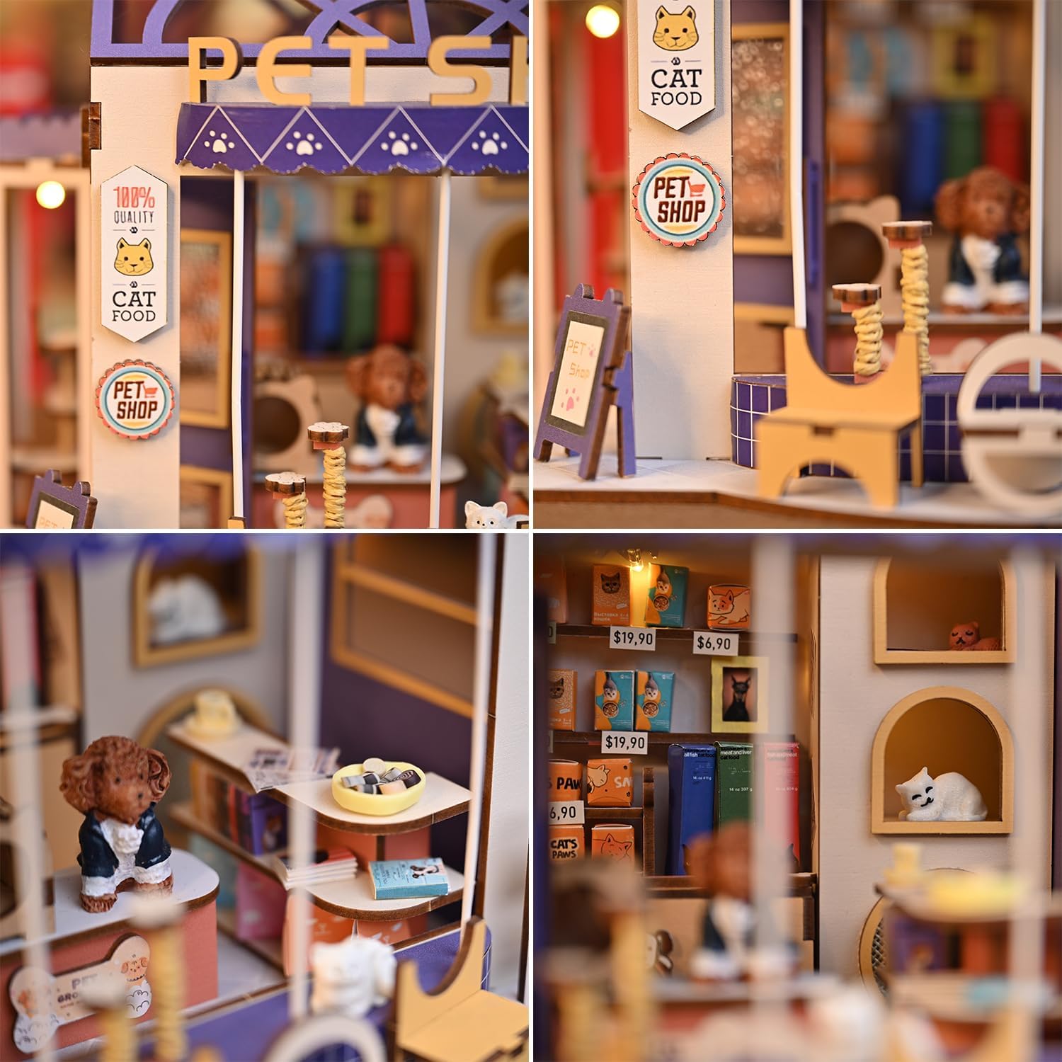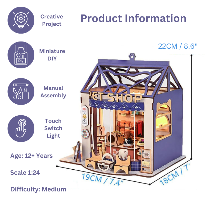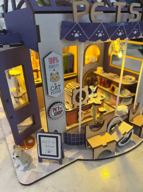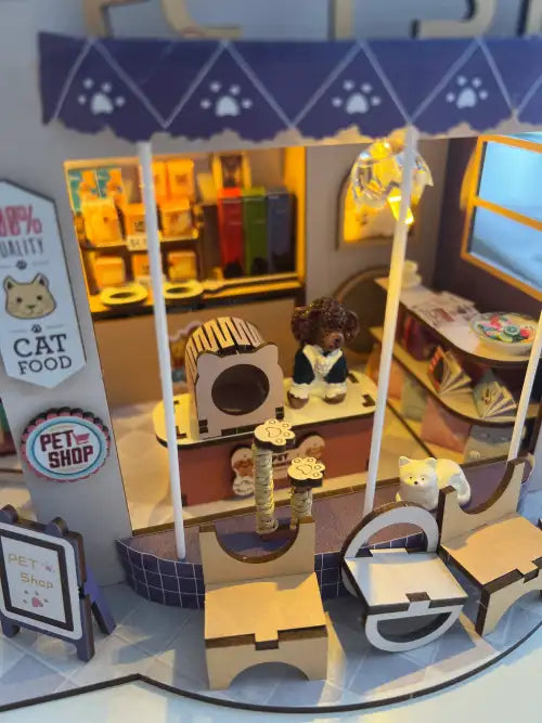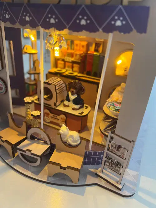 Step into the delightful world of the Cat and Dog Pet Shop Miniature Dollhouse, where tiny furry friends await your affection! This charming dollhouse transports you into a cozy haven filled with miniature cats and dogs, each with their own unique personality and charm. Meander through the quaint aisles adorned with tiny pet beds, scratching posts, and colorful toys, all perfectly scaled down for your tiny companions.